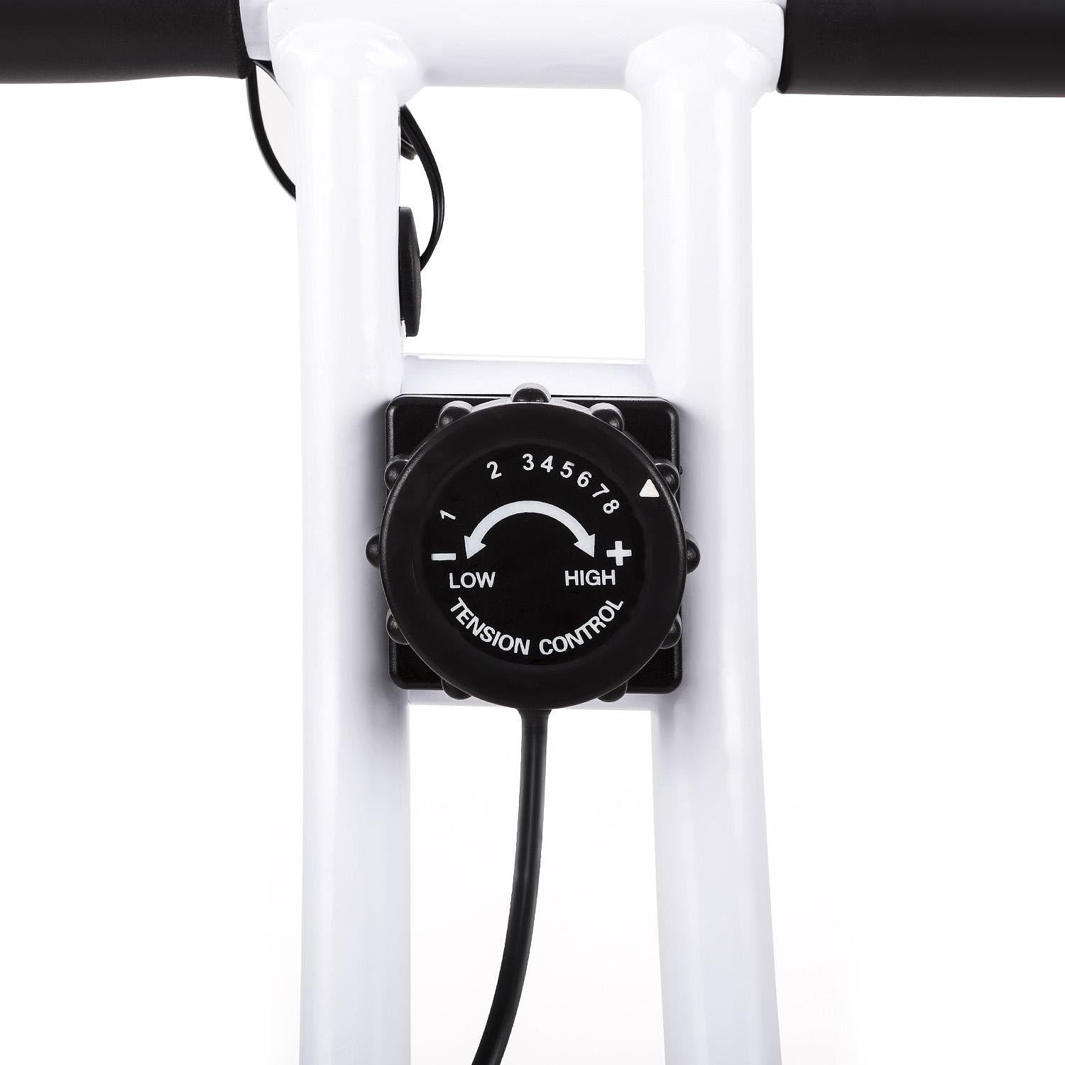 Techfit R 410 tiene un sistema de frenado magnético, es decir que no se necesita corriente para su funcionamiento, tiene 8 niveles de resistencia diferentes, para permitirle variar la intensidad de las actividades sin hacer demasiado ruido, pero sobre todo para adaptarse al mejor a las necesidades, pero también al potencial de aquellos que están pedaleando, además de un volante silencioso de 7 kg, hecho de acero de excelente calidad, para una mayor durabilidad.